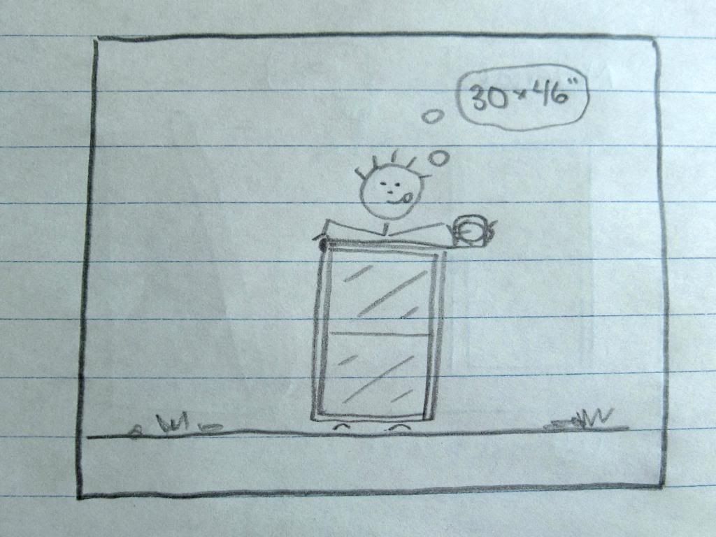To determine the dimensions of your cold frame, measure your window’s width and height. My window turned out to be 30″ wide by 46″ high.