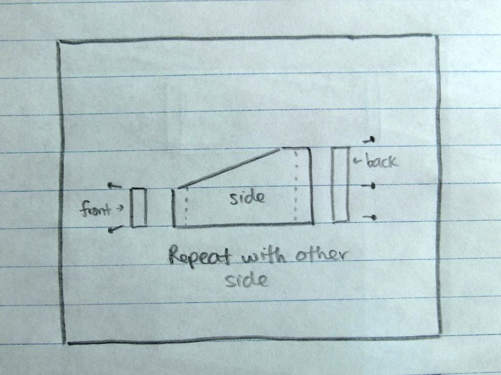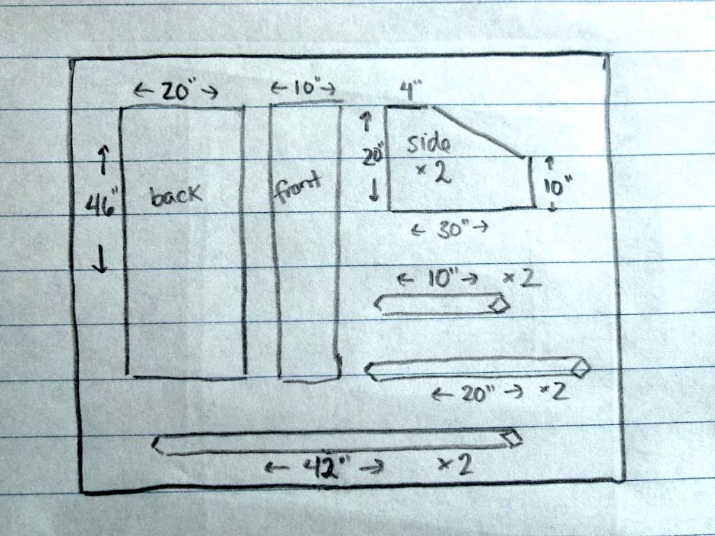 This one speaks for itself: get cutting! The 2 x 4 cuts are easily accomplished with a handsaw. For the plywood cuts (especially the diagonal cuts for the side pieces) you may want to resort to a circular or jigsaw.