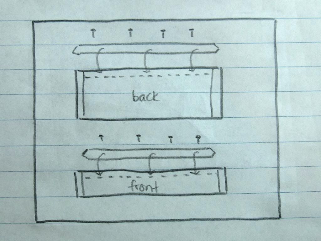 Attach both long pieces of 2 x 4 to the front and back plywood pieces, as shown. They should fit perfectly in the space between the short pieces of 2 x 4.