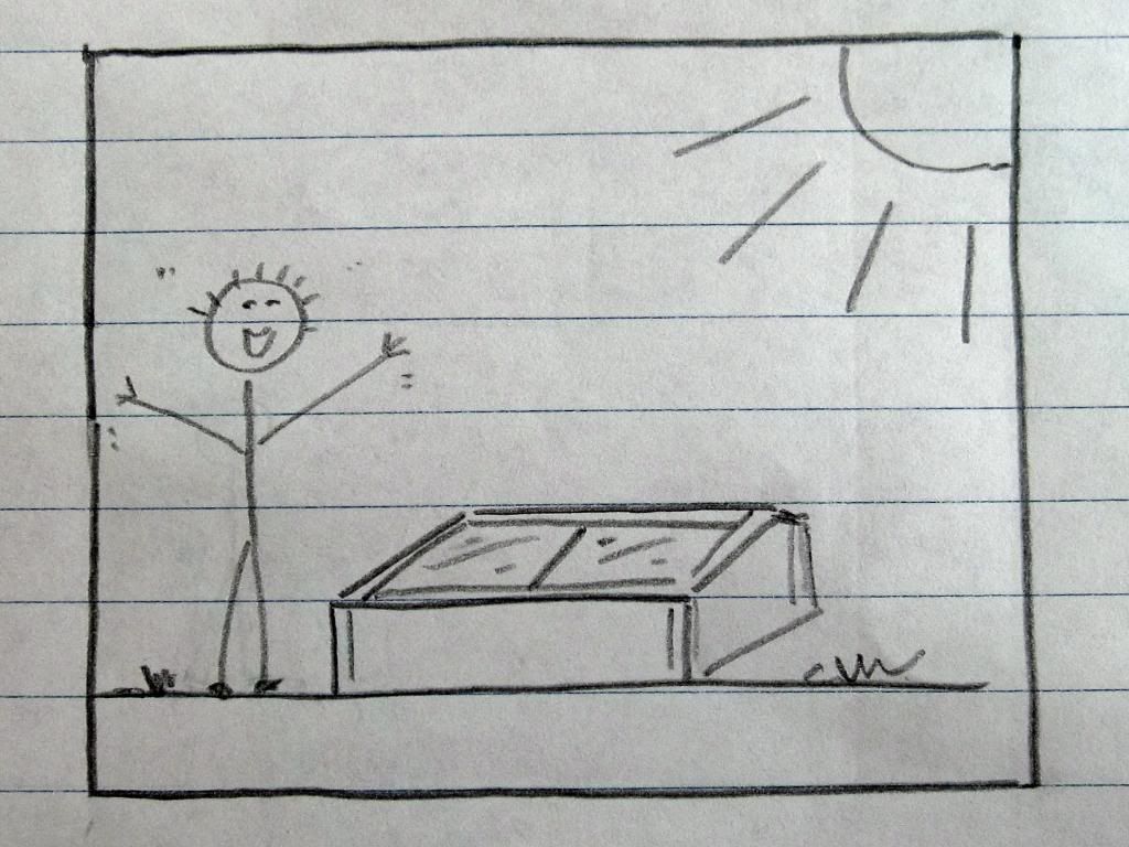Step one: Gather your materials, and head to a suitable locale for building a cold frame. Sweepability is important.